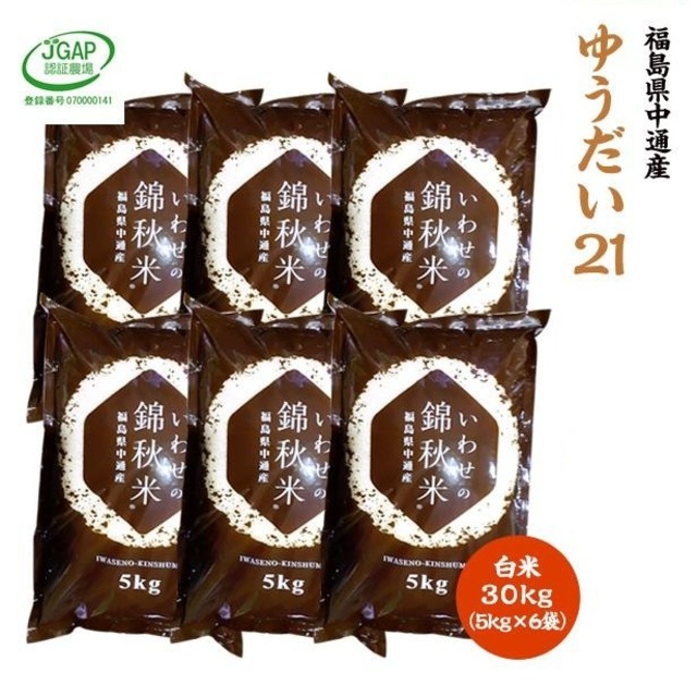 令和7年産 福島県中通産ゆうだい21精米 30kg JGAP団体認証農場須賀川市鈴木さんが育てたお米