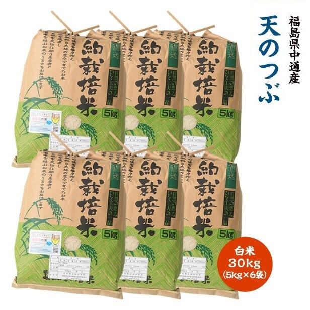 【新米予約】令和7年産 福島県中通産天のつぶ精米 30kg