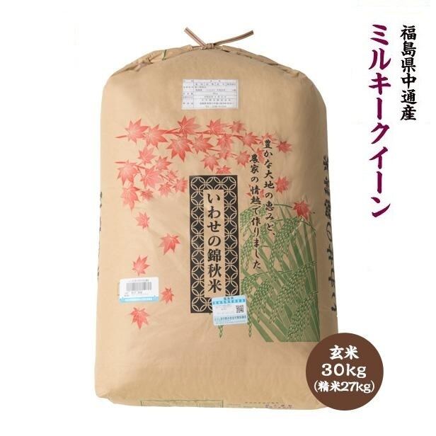 【新米予約】令和7年産 福島県中通産ミルキークイーン 玄米30kg(精米27kg)